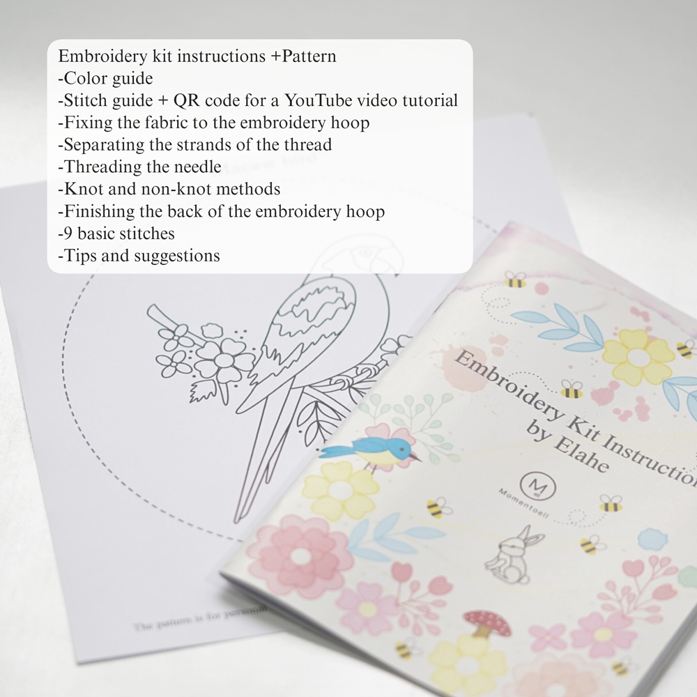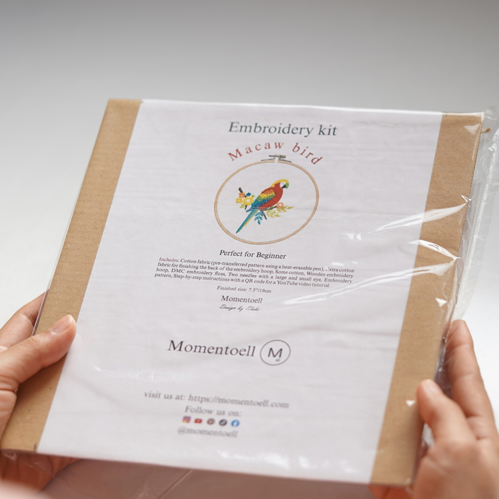 Momentoell offers unique, high-quality embroidery patterns and tutorials suitable for all skill levels. Our physical products include embroidery kits and cotton fabric, which are shipped worldwide from Dubai. We provide comprehensive guides, including step-by-step YouTube videos and detailed PDF tutorials to help you master embroidery.