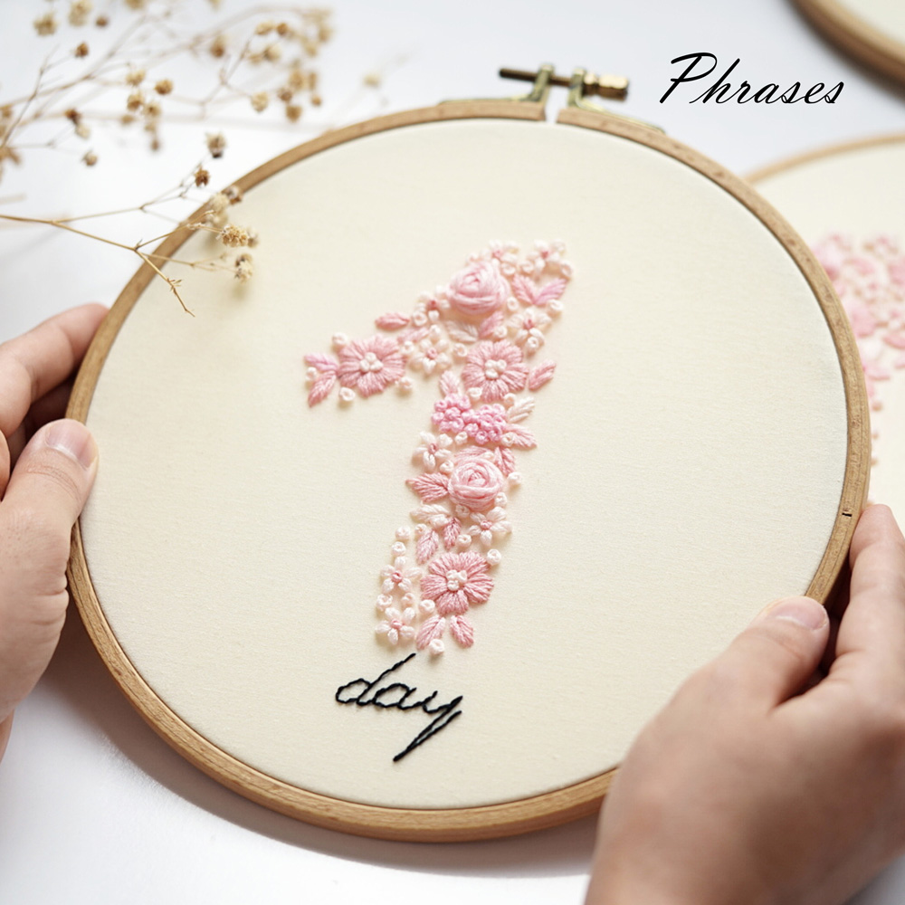 2- PDF Phrases (8.3 x 11.7 in / 21 x 29.7 cm): Included Phrases, sized for a 7”/18cm round embroidery hoop with detailed instructions for printing using Adobe Acrobat Reader.