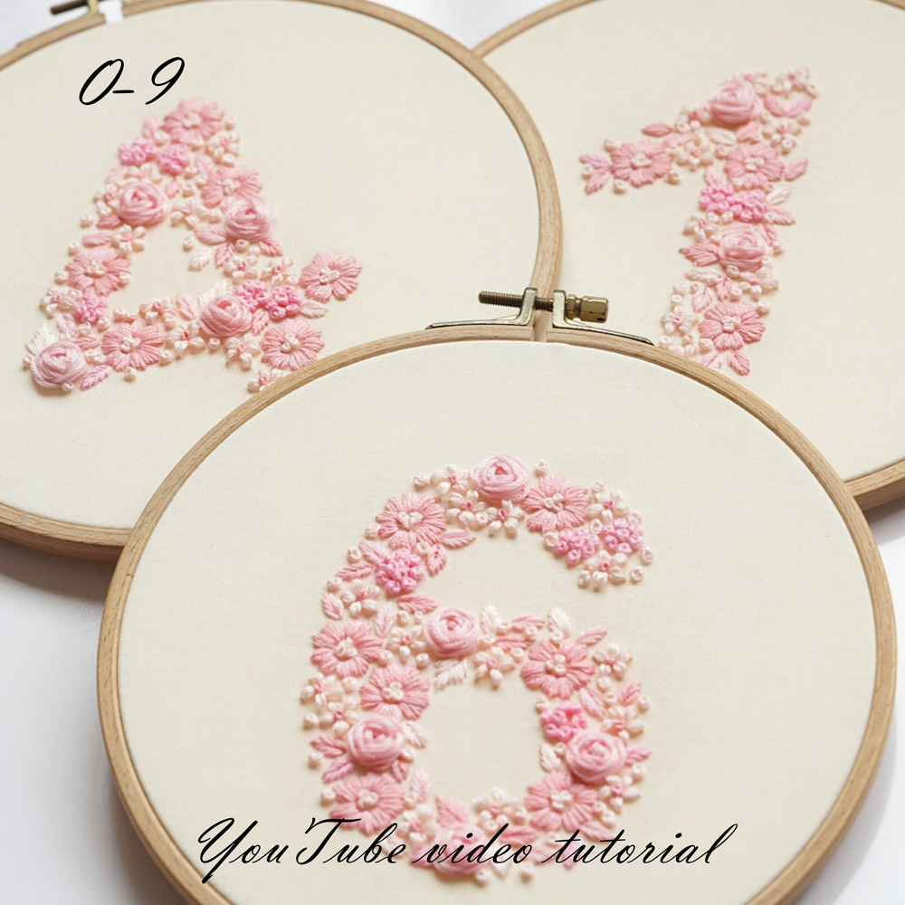 1- PDF Pattern (8.3 x 11.7 in / 21 x 29.7 cm): Included numbers 0-9, sized for a 7”/18cm round embroidery hoop with detailed instructions for printing using Adobe Acrobat Reader.