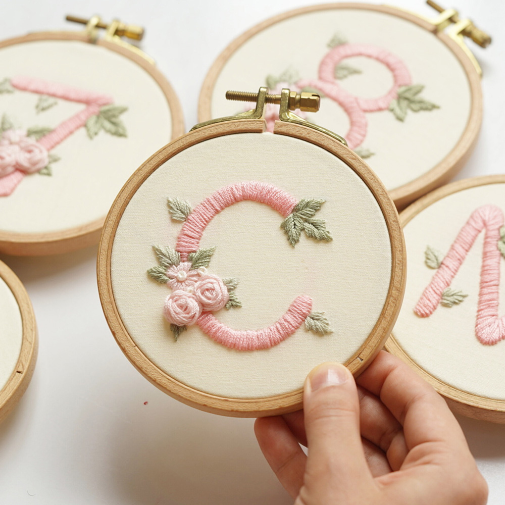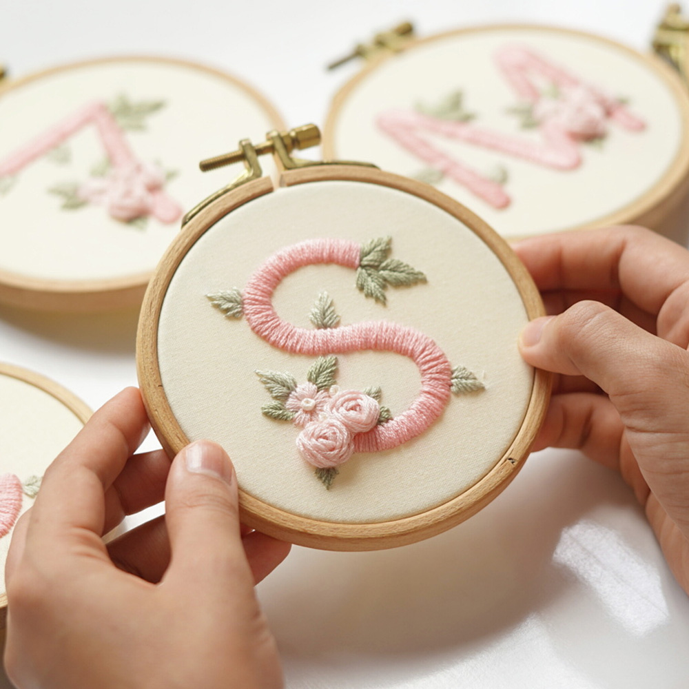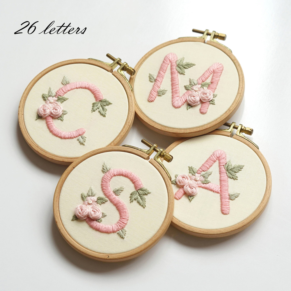 1- PDF Pattern (8.3 x 11.7 in / 21 x 29.7 cm): Included 26 letters A-Z, sized for a 4”/10cm round embroidery hoop with detailed instructions for printing using Adobe Acrobat Reader.