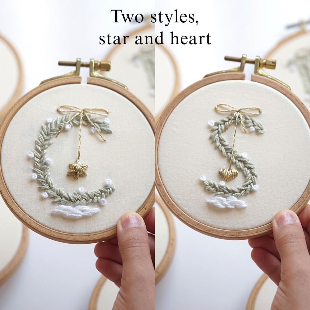 2- PDF Pattern 2 (8.3 x 11.7 in / 21 x 29.7 cm): Included 26 letters A-Z with heart style, sized for a 4”/10cm round embroidery hoop with detailed instructions for printing using Adobe Acrobat Reader.